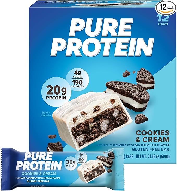 Pure Protein Bars, High Protein, Nutritious Snacks to Support Energy, Low Sugar, Gluten-free, Cookies and Cream, 1.76oz, 12 Pack