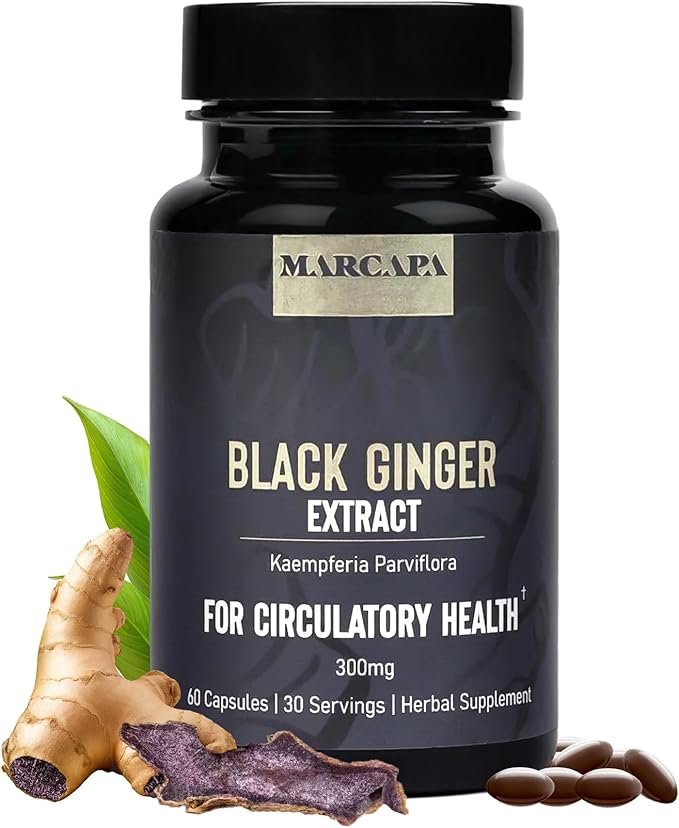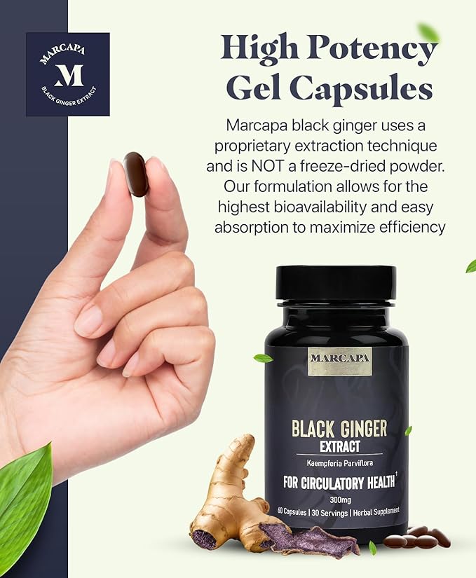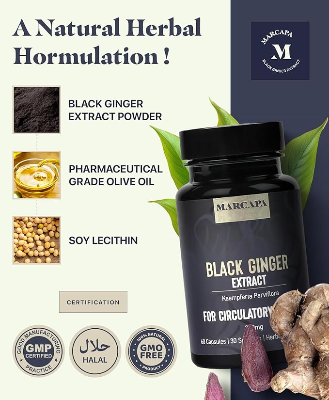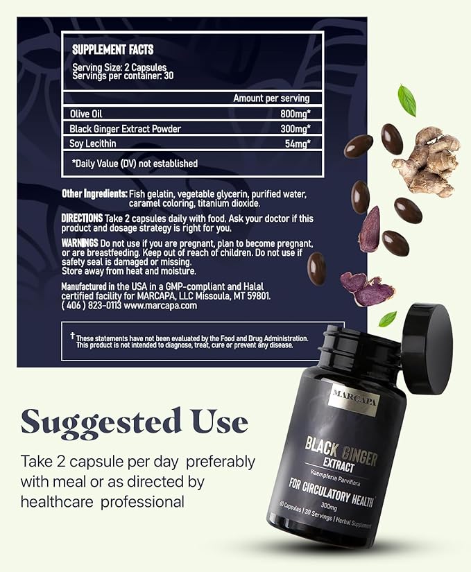 Marcapa Black Ginger Root Supplement - 60 Softgels | Organic Ginger Extract for Cardiovascular & Metabolic Support | Enhanced Energy & Endurance | Optimal Absorption with Olive Oil