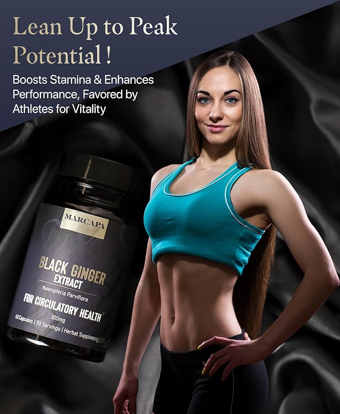 - POTENT GINGER EXTRACT: Each soft-gel capsule contains 300 mg of Marcapa black ginger extract encapsulated with pharmaceutical grade olive oil, ensuring optimal absorption and effectiveness, which results in increased energy levels and endurance.
