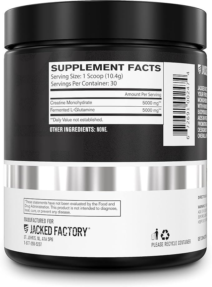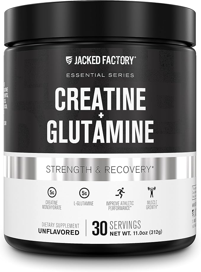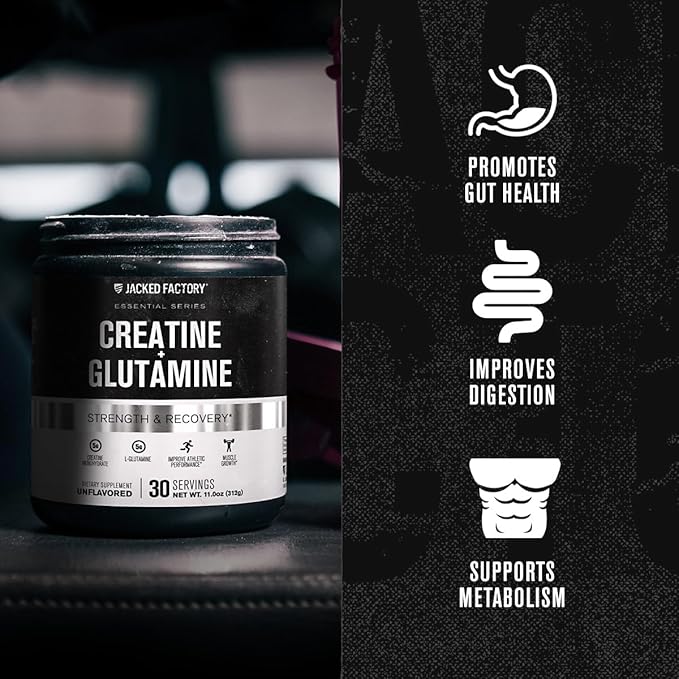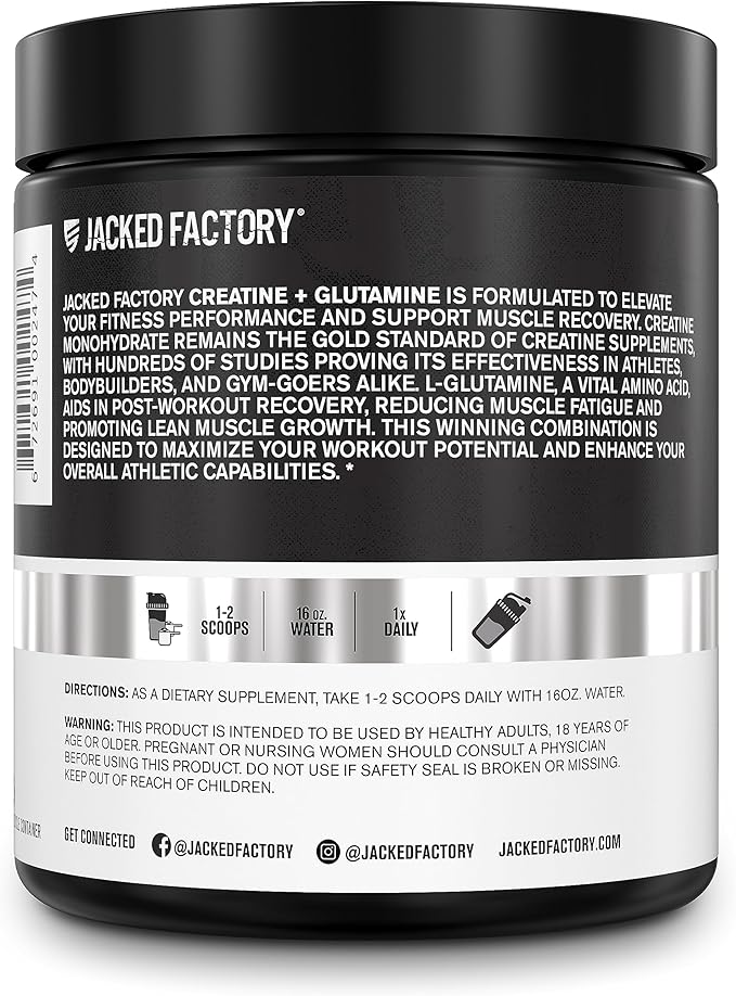 - Synergistic Muscle Support: Maximize your workout results with the dynamic duo of Creatine and Glutamine. Creatine Monohydrate & L-Glutamine's synergistic benefits support muscle recovery and a reduction in muscular fatigue, ultimately enhancing strength gains and promoting lean muscle mass.