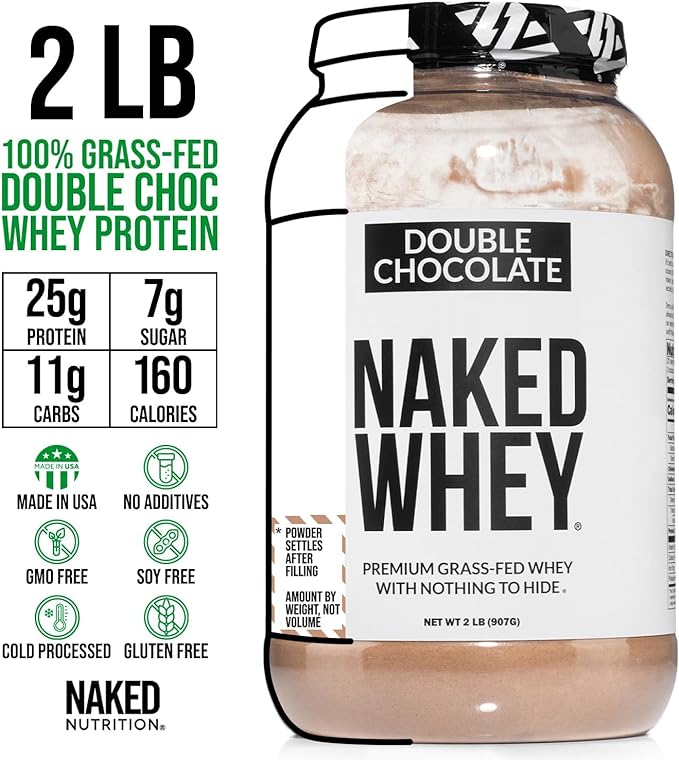 - CHOCOLATE WHEY PROTEIN: Use our double chocolate grass fed protein powder as the perfect base of flavor to blend with fruits and vegetables to create healthy pre and post-workout protein shakes. Because Double Chocolate Naked Whey has only six premium ingredients, you can use it to bake high protein recipes such as protein pancakes to take your muscle gains and recovery to new heights.