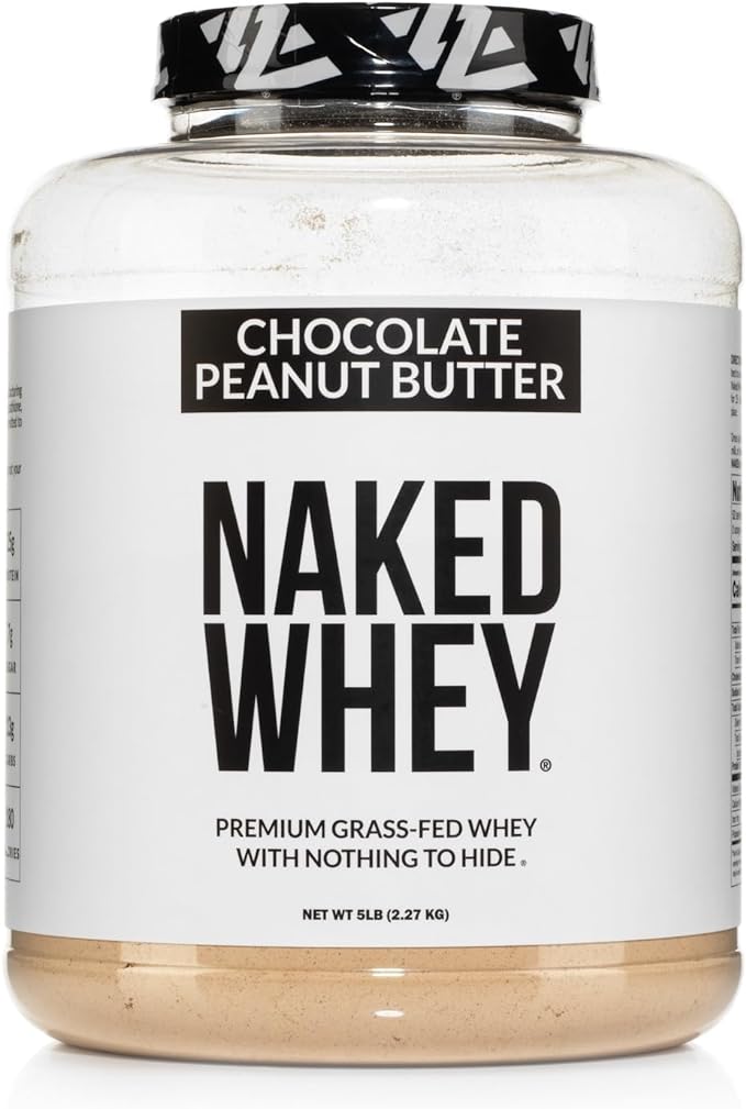 Naked Whey Chocolate Peanut Butter Grass Fed Whey Protein Powder, No GMO, No Soy, and Gluten Free, Aid Growth and Recovery - 52 Servings