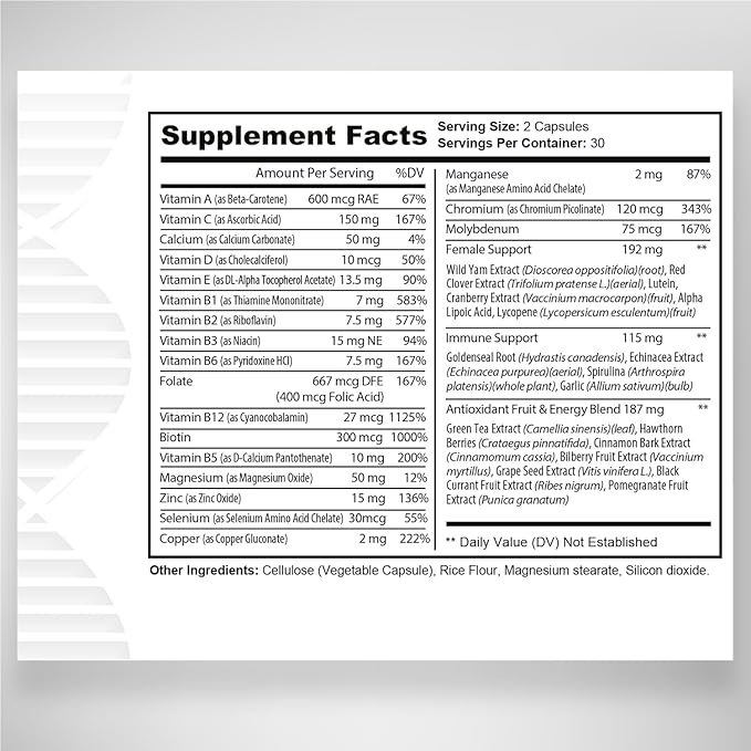 - ✅ MULTIVITAMIN FOR WOMEN specially formulated to support womens health needs with Vitamins A, C, D, E, B-6 and B-12, Biotin, Zinc, Calcium, support immune and bone health and energy metabolism