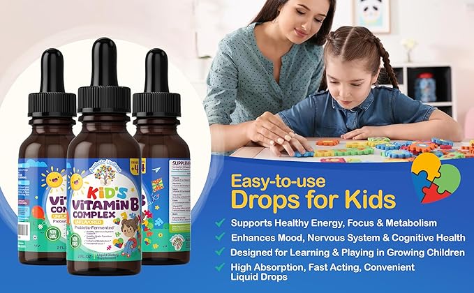 - HEALTHY NERVOUS SYSTEM SUPPORT: Comprehensive B Vitamin Blend: With a spectrum of B vitamins, including B1, B2, B3, B5, B6, B7, B9, and B12, our product actively supports a healthy nervous system, vital for cognitive and behavioral development. These essential B vitamins play a crucial role in maintaining the health and proper functioning of nerve cells, providing a solid foundation for your child's overall health.