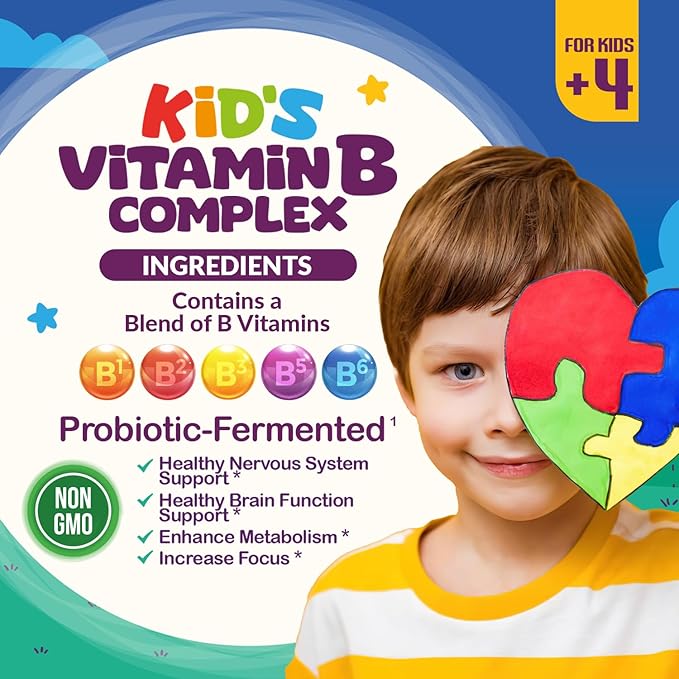 - PROBIOTIC-FERMENTED: Our Kid's Vitamin B Complex features a probiotic-fermented formula, promoting a balanced gut microbiota and encouraging digestive health. This unique fermentation process enhances the absorption of essential nutrients, ensuring optimal benefits for your child's well-being.
