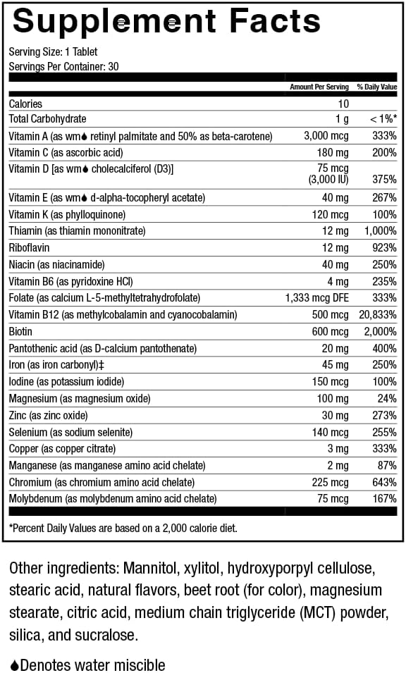 - Optimized Nutrient Absorption: Utilizes water-miscible forms of vitamins A, D, and E, which enhance absorption without the need for fat intake, and chelated minerals to improve absorption in a low-acidic environment that is common in weight loss surgery patients