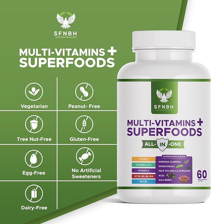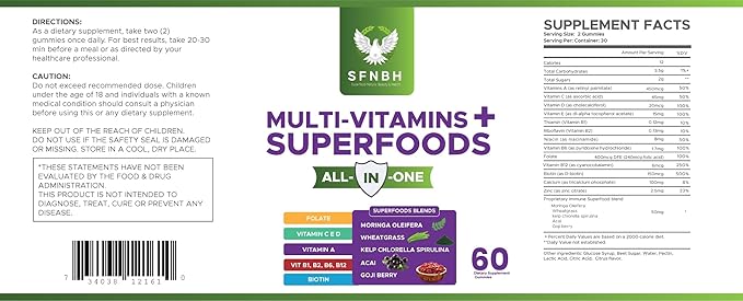 - Achieve optimal immune health with our exceptional product. Our formula boasts the essential vitamins A, C, E, and D, along with B1, B2, B6, B12, and folate, all in one convenient package. SUPERFOODS HEALTH BOOST