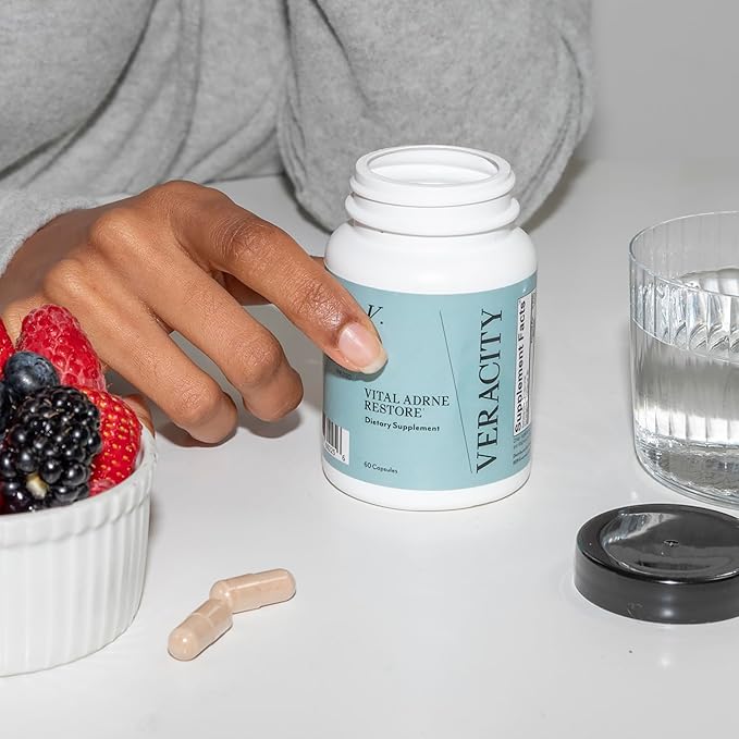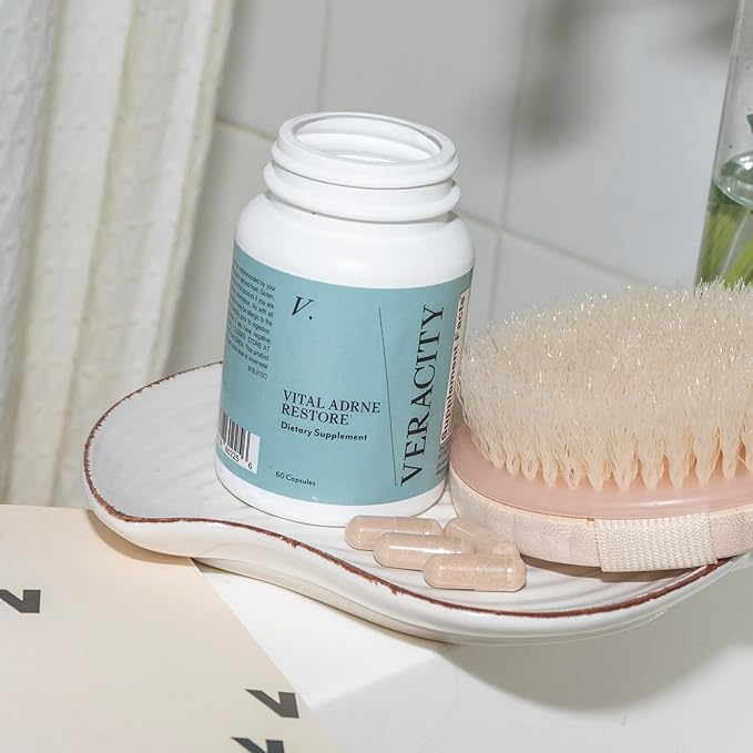 - FATIGUE EASE ADRENAL SUPPORT SUPPLEMENT: Revitalize your body and restore your skin with Veracity Adrenal Support Supplement. Formulated with five clinically proven adaptogens and a unique blend of micronutrients, this supplement helps support healthy cortisol levels, reduce daily stress, and enhance energy levels. Ingredients like organic Rhodiola Rosea and Schisandra Berry work together to combat irritation, dehydration, and dullness, promoting overall skin health and resilience.