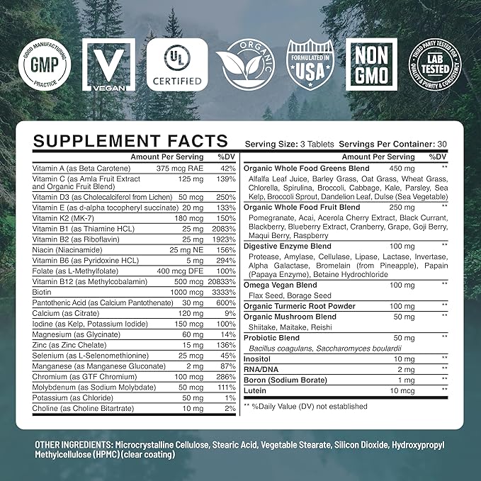 - BEST MULTIVITAMIN FOR MEN & WOMEN – Enjoy the highest quality Organic Multivitamin for Women/Men in our superior, 100% VEGAN MULTIVITAMINS made with + 30 Fruits, Vegetables & Herbs, plus powerful Mood Probiotic Strains, Digestive Enzymes, Vegan Omegas, Green Superfoods +more! SAVE TIME & MONEY with our complete multivitamin mineral complex. Yes, the best choice can also be the easiest!