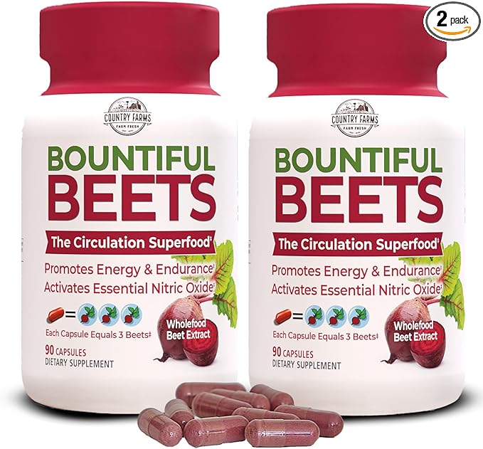 - CIRCULATION SUPERFOOD. Nitrates are converted to nitric oxide in your body, which supports circulatory health. When taken daily, Country Farms Bountiful Beets Capsules naturally help to promote healthy circulation and cardiovascular health, increase energy, and improve stamina.