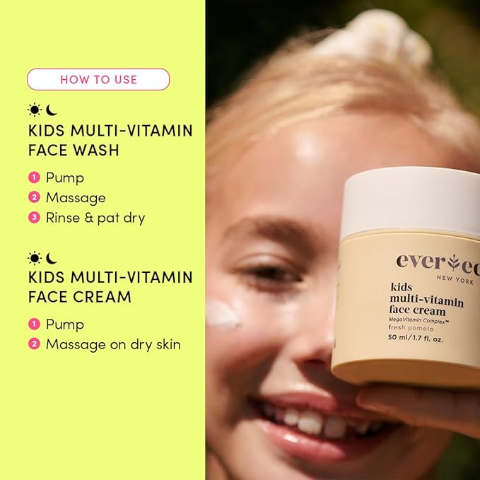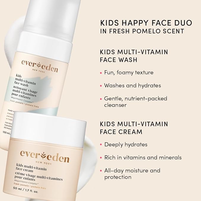 Evereden Kids Happy Face Duo (Fresh Pomelo) - Multi-Vitamin Kids Face Wash & Kids Face Cream Set - Clean & Vegan Skin Care for Kids 3+ - Moisturizing, Nourishing, & Protective Kids Skin Care Set