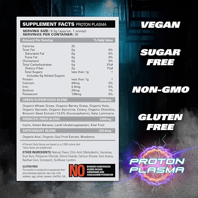 EHP Labs x Ghostbusters OxyGreens Super Greens Powder - Spirulina & Chlorella Superfood, Green Juice Powder with Prebiotic Fibre, Antioxidants & Immunity Support, 30 Serves (Proton Plasma)