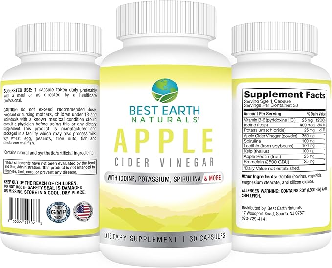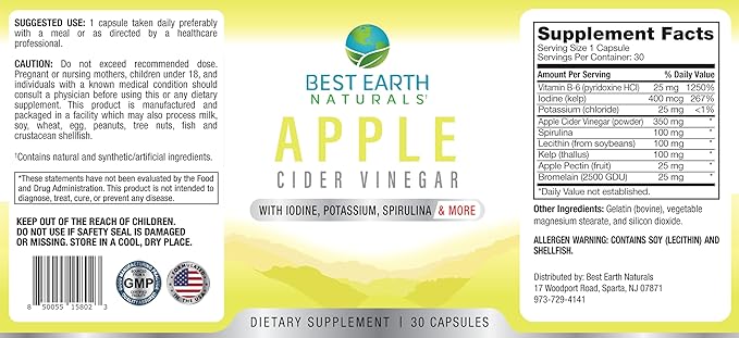Best Earth Naturals Apple Cider Vinegar Complex with Iodine, Potassium, Spirulina and More 30 Count