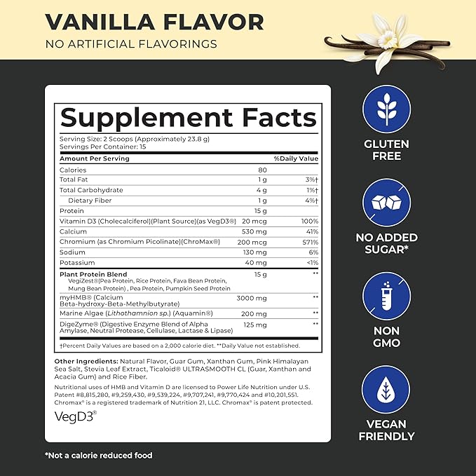 - NUTRIENT PACKED: A unique blend of powerful plant proteins, HMB, vitamin D3, and digestive enzymes designed to nourish your muscles, support your strength, and support the preservation of lean muscle!