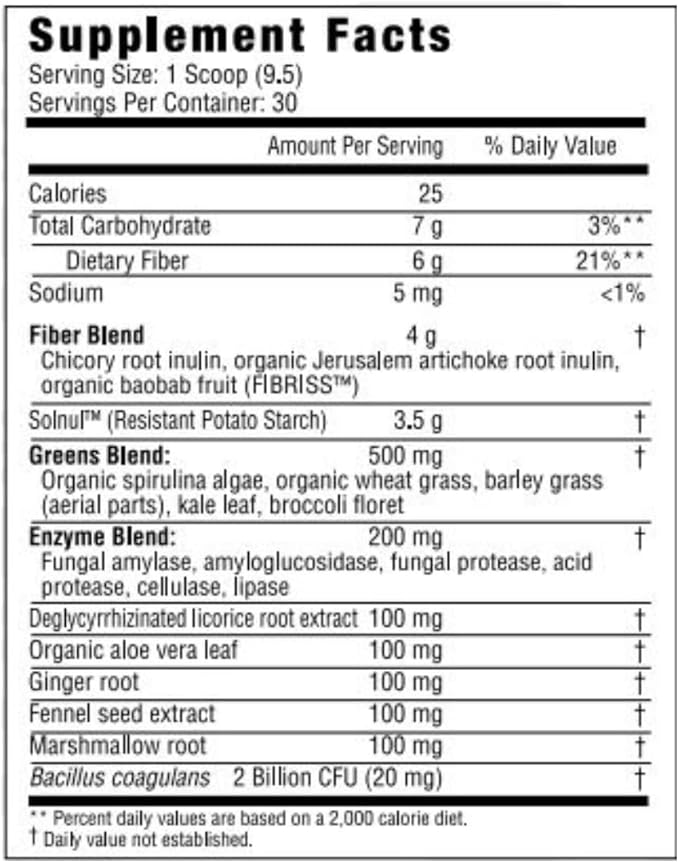 - PROMOTES REGULARITY & GUT HEALTH: Our blend of digestive enzymes to help break down protein, carbs, dairy and other hard-to-digest foods. As a result, it helps ease water retention, bloating, gas, and digestive woes. We also added a Fiber blend of chicory root, Jerusalem artichoke and organic baobab fruit to promote digestive motility and support regular bowel movements.