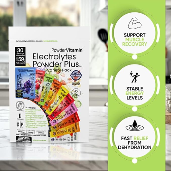 - Product Benefits : Keep Yourself Hydrated – Without added calories. PowderVitamin Sugar-Free Electrolyte Powder Plus aids in per workout & post workout muscle recovery with potassium and essential mineral salts Keep Yourself Hydrated – Without added calories. PowderVitamin Sugar-Free Electrolyte Powder Plus aids in per workout & post workout muscle recovery with potassiu… See more