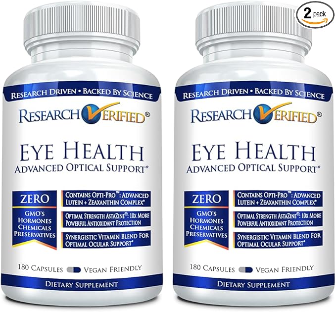 Research Verified Eye Health - Nourish and Protect Eyes and Vision, Support Healthy Retina, Improve Blood Supply to Eyes - Vitamins A, B, C, and E - 360 Capsules - 6 Month Supply - Made in The USA