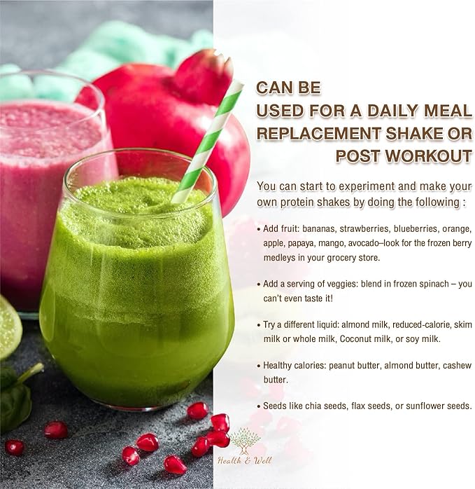 Health & Well Plant-Based Protein Powder, Contains Three Vegan proteins and Eight Different Super Fruits (Vanilla)