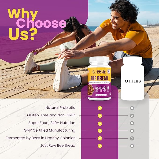 - SOURCED FROM ALL-NATURAL RAW BEE BREAD: Produced in a GMP-certified facility in the USA, our bee capsules are vegetarian, non-GMO, gluten-free, and free from fillers, binders, or additives, ensuring pure and potent bee bread.