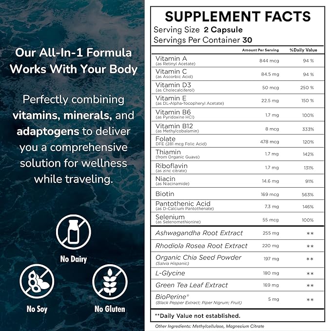 - BENEFITS - Support for: Jet Lag, Immune, Sleep, Digestion, Mental Clarity, Stress Management, Energy, Mood + Full Daily Multi-Vitamin