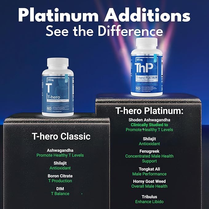 - FOR PEAK MALE PERFORMANCE: Rediscover satisfaction and vigor in the bedroom by supporting libido, stamina, and vitality with T-hero Platinum.* Uplift your confidence with healthy T levels and face life’s demands with resilience.*