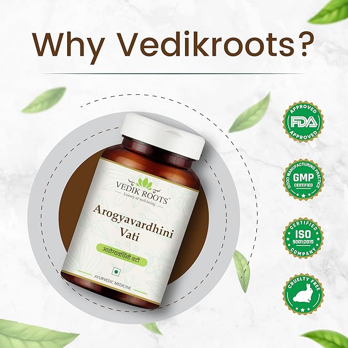 - Formulation: Made with all-natural ingredients, Vedikroots Arogyavardhini Vati tablets are gentle on your body and free from harmful chemicals.