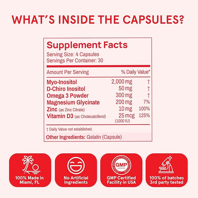 - Packed with Proper Doses for Maximum Results: Our inositol capsules feature optimal doses of myo-inositol & d-chiro inositol, Omega-3, zinc, magnesium glycinate, and vitamin D3. This inositol supplement supports cycle balance, mood, and energy —outperforming other inositol powders or myo inositol gummies on the market.