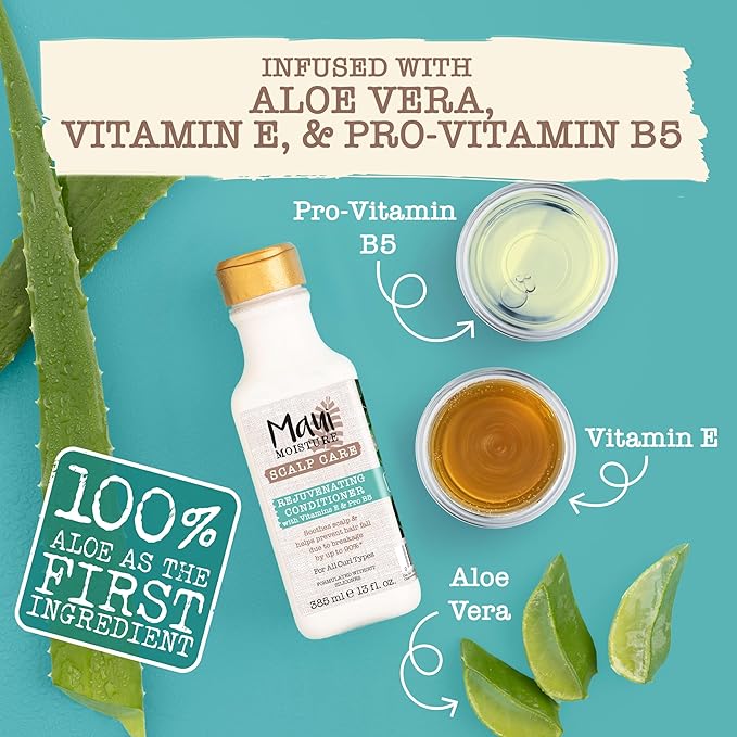 - CONDITIONS HAIR: 13-fluid ounces of Maui Moisture Rejuvenating Conditioner with Vitamin E, Pro-Vitamin B5 & aloe vera to soothe your scalp & rapidly soften your curly hair