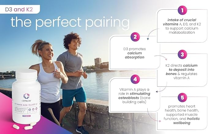 - πͺ ππ’π‘π π¦π§π₯ππ‘ππ§π π¦π¨π£π£π’π₯π§: Introducing this ADK formula in the market to push your health to the next level. Vitamin D3 is essential for absorbing calcium from food and supplements into your body. Bone health requires more than just calcium; it needs the right nutrients to support proper absorption. However, calcium needs to be properly directed to the bones for effective use. Vitamin K2 (specifically MK-7) is vital in this process, helping to activate proteins that guide calcium to the bones.