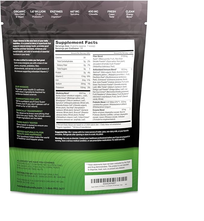 - Versatile & Convenient for Busy Lifestyles: Super Greens is tailored for those on the go, our easy-to-use formula supports healthy detoxification and immunity. Mix it in water or smoothies for a convenient, comprehensive nutritional solution.