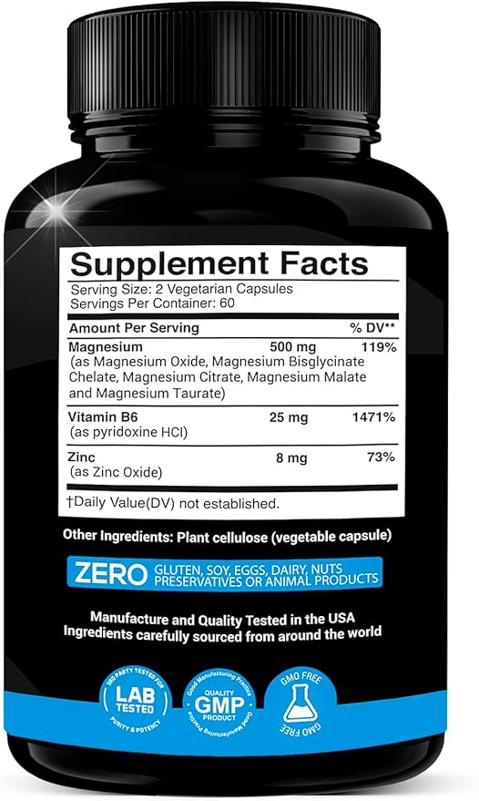 - SUPERCHARGE YOUR BODY: Our potent magnesium fusion, complemented by Vitamin B6 & Zinc, amplifies metabolism, combats fatigue, and supports cognitive sharpness and endurance. Zinc aids vital enzymes that fortify immunity for faster recovery, while B6 has shown the ability to regulate mood, focus, boost energy, and clear brain fog so you can stay on top of your game all day long.