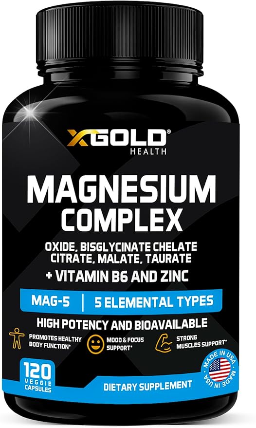 Magnesium Complex 500mg with Vitamin B6 & Zinc Supplement| Mag Complex - 5 in 1 with Magnesium Oxide, Bisglycinate Chelate, Citrate, Malate & Taurate | Blend for Optimal Health |120 Caps Made in USA