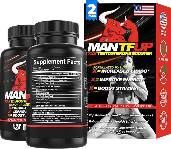 Vitality Enhancer for Men | Fast-Acting Testosterone Booster & Daily Supplement to Support Male Health & Libido | Potenciadores de Testosterona | Made in USA (2 Month Supply, 120 Caplets)