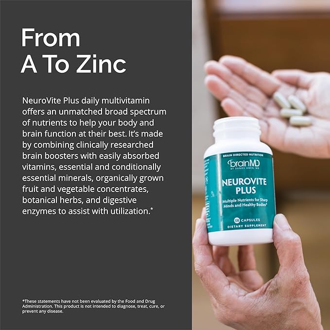 Dr Amen BrainMD NeuroVite Plus - 120 Capsules, Pack of 2 - Multivitamin & Mineral Supplement - Enhanced with Phytonutrients, Enzymes & Whole Foods - Gluten Free - 60 Total Servings