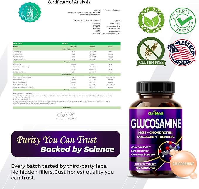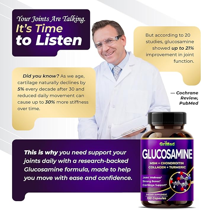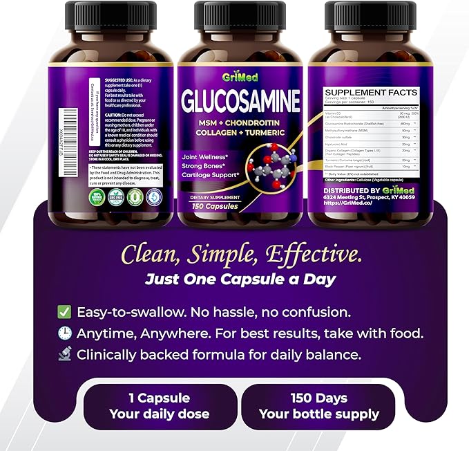 - Exceptional Value in Every Capsule: GriMed is dedicated to providing outstanding value with its top-tier products. Every Glucosamine bottle comes packed with a substantial 150 capsules, ensuring a complete 5-month supply. However, that's not the only remarkable feature – this supplement also boasts an incredible of concentrated herbal powder per serving, ensuring optimal effectiveness with every dose.