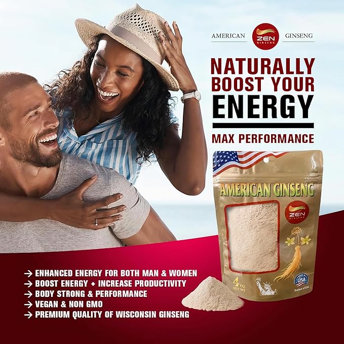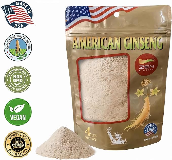 Zen Ginseng Powder - 4 oz. Bag of American Wisconsin Ginseng Extract - Non-GMO, Gluten Free - for Soups, Teas, Coffee, Juices, Smoothies and Baking.