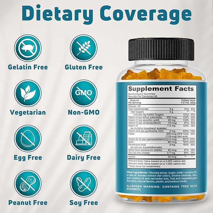 - Primary Supplement Type : Vitamin A, C, D, E, B6, B12, Folate, Biotin, Pantothenic Acid, Iodine, Zinc, and Inositol