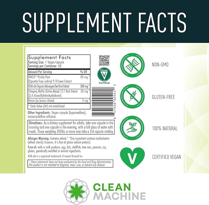 CLEAN MACHINE Cell Block 80 - Natural Vegan Testosterone Support Supplement, Estrogen, DHT & Cortisol Blocker - Prostate Health Supplement with KSM66 Ashwagandha - 60 Veggie caps
