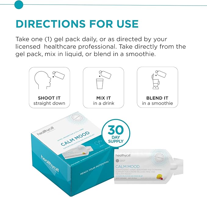 Healthycell Calm Mood - Ashwagandha Supplement for Stress Relief with L-theanine, Magnesium, GABA, Saffron - Cortisol Manager - Maximum Absorption Gel Vitamin for Mood & Relaxation, 30 Gel Packs