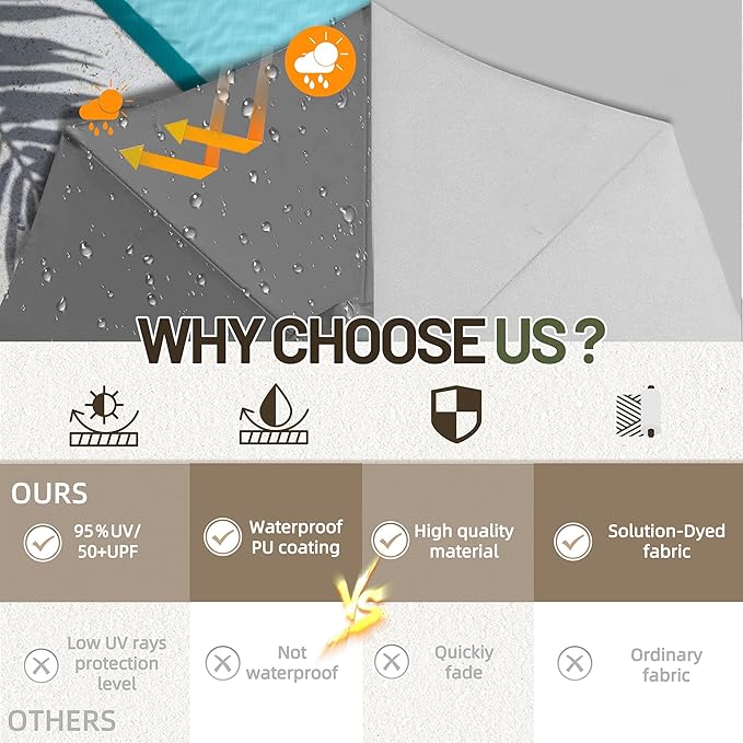 - Upgrated Fabric and Steel: We upgrated the internal structure and fabric for this patio offset umbrella. The thicker material used will keep your skin protected from the ultraviolet ray and keep for year to last
