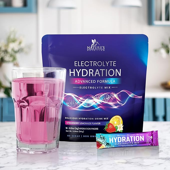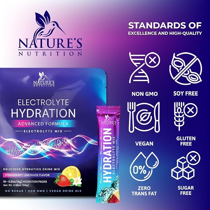 - Revitalize with On-The-Go Hydration: Nature's Nutrition Strawberry Lemonade Electrolytes Powder Packets, enriched with Vitamin C and Zinc, support electrolyte balance and immune health on-the-go, ensuring your routine never misses a beat