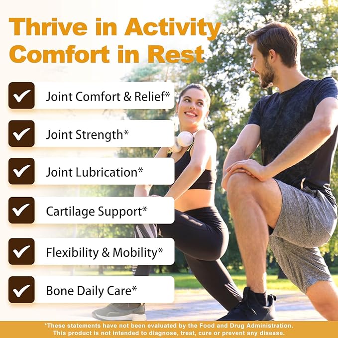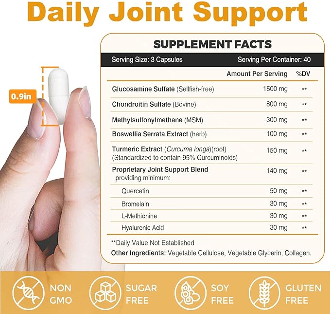 - Higher Content - The 9-IN-1 formula adds MSM, Turmeric, Boswellia, Quercetin, Bromelain, L-methionine, and Hyaluronic Acid, they are all good for joint and cartilage, to help you get more comfort!