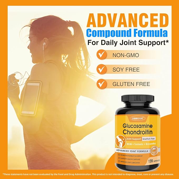 ZEBORA Glucosamine Chondroitin Joint Support Supplement, with MSM Turmeric Boswellia, Glucosamine Sulfate, Glucosamine Chondroitin MSM, for Joint Health & Relief Nutritional Supplements, 120 Capsules