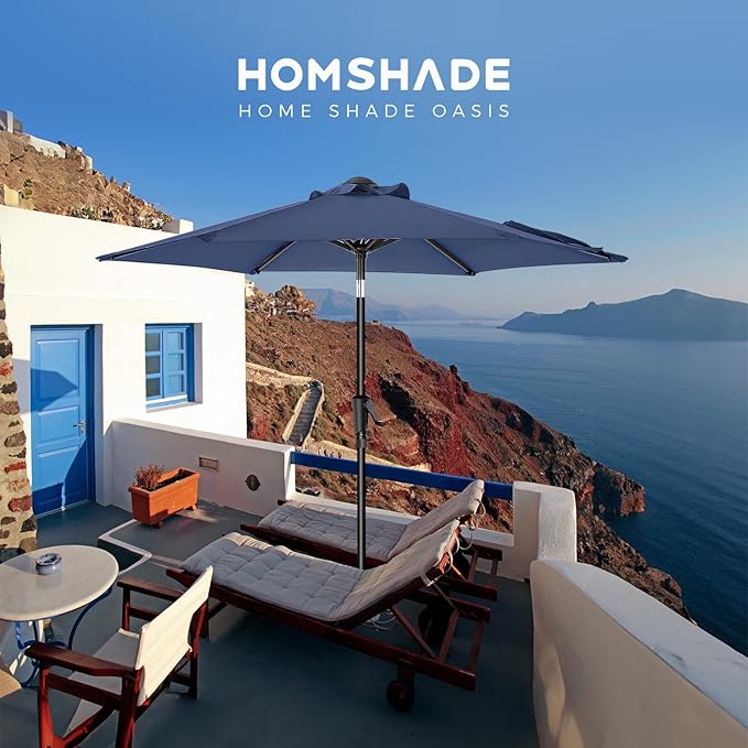 - USE AND MAINTENANCE: The 7.5ft patio umbrella requires a proper base (not included; HOMSHADE umbrella base H12/H13/H14/H15/H16/H17 available). Close and secure it with the strap during strong winds or storage to prolong lifespan.