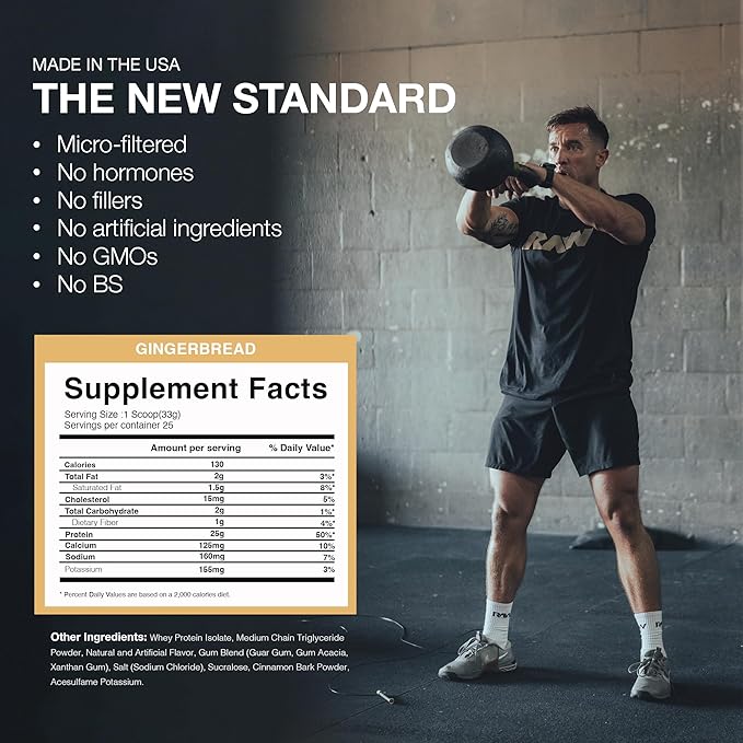 RAW Whey Isolate Protein Powder, Gingerbread (CBUM Itholate Protein) - 100% Grass-Fed Sports Nutrition Powder for Muscle Growth & Recovery - Low-Fat, Low Carb, Naturally Flavored - 25 Servings