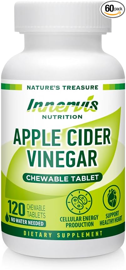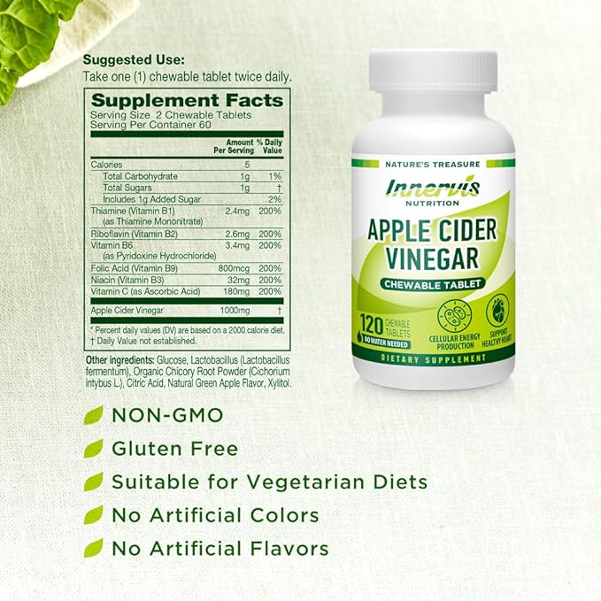 Apple Cider Vinegar 120 Chewable Tablets Healthy Heart Immune Support Energy Production Supplement