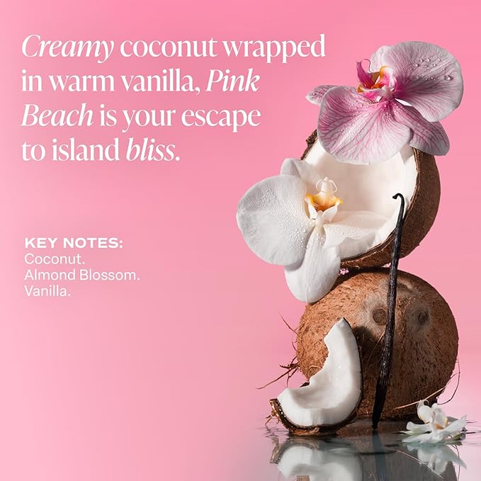 - SIGNATURE SCENTS: This two-pack features one each of our two popular signature scents. Pink Beach with Coconut, Almond Blossom, and Vanilla for island bliss. Santal Bloom with Rose, Jasmine, and Sandalwood for a heavenly day, lying amongst flowers with a woodland breeze