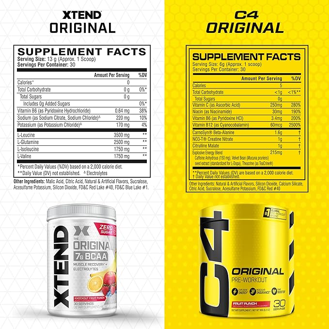 Cellucor Pre Workout & BCAA Bundle, C4 Original Pre Workout Powder, Fruit Punch, 30 Servings + XTEND BCAA Powder, Knockout Fruit Punch, 30 Servings