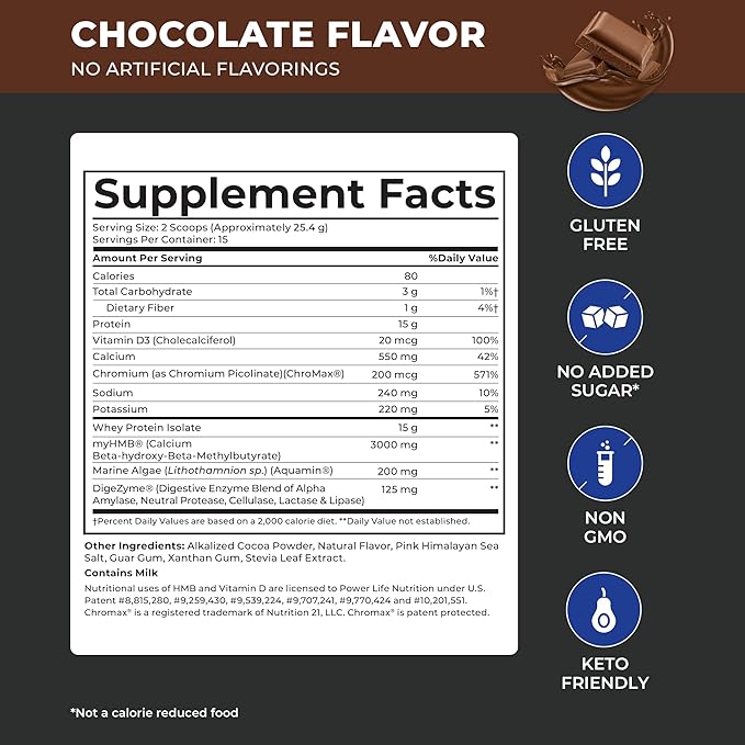 POWERLIFE Tony Horton High Impact Grass Fed Whey Protein with 3000 MG of HMB, No Sugar Added, Non-GMO, Hormone and Antibiotic Free, 15 Servings (Chocolate - New Formula)