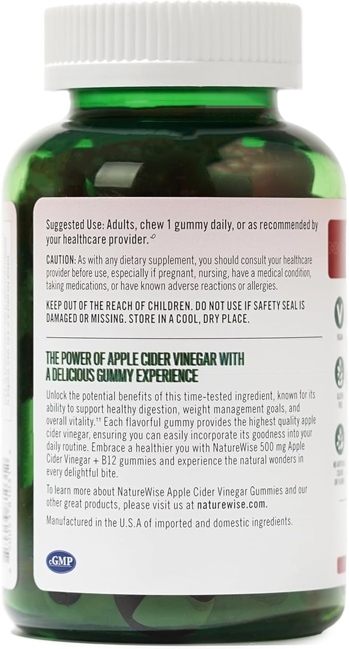 - PREMIUM INGREDIENTS: NatureWise Apple Cider Vinegar Gummies are manufactured in the USA with high-quality ingredients from around the world in a cGMP-certified facility with third-party quality control audits.